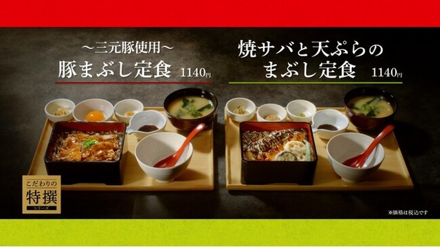 このたび「やよい軒」では、素材の良さと食べ方の楽しさにこだわった“こだわりの特撰シリーズ”として現在販売中の『~三元豚使用~豚まぶし定食』『~骨取りサバ使用~焼サバと天ぷらのまぶし定食』のTVCMを、2月13日(金)より放映いたします。