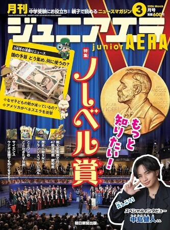 親子で楽しく読めて、中学受験・高校入試の勉強にも役立つ、小・中学生のためのニュース月刊誌ジュニアエラ2026年3月号が、2月14日(土)に発売されました。特集は「もっと知りたい ノーベル賞」。インタビューは、4年ぶりに本誌に登場の中島健人くんです!
