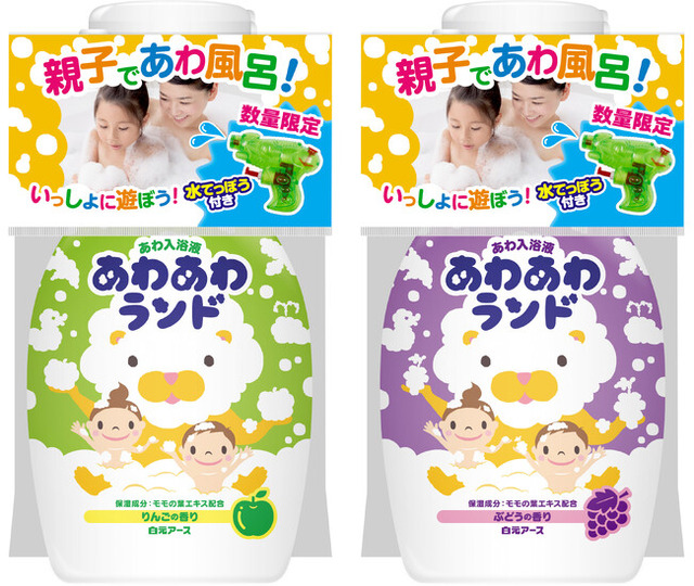白元アース株式会社(本社:東京都足立区、社長:吉村一人)は、泡入浴液(浴用化粧料)『あわあわランド 水てっぽうのおまけ付き(りんごの香り・ぶどうの香り)』を3月2日より数量限定発売いたします。