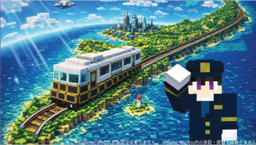 マインクラフトプログラミング教室マインクラフトでプログラミングをして電車をつくろう!子どもたちに人気のゲームを使って、鉄軌道があることでまちがどう変わるのかを遊びながら考える体験です。