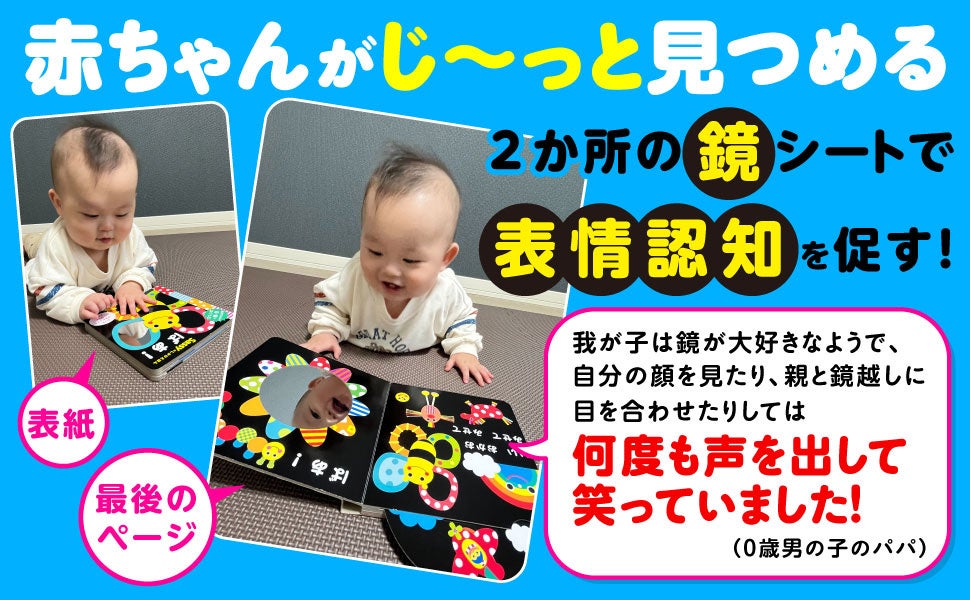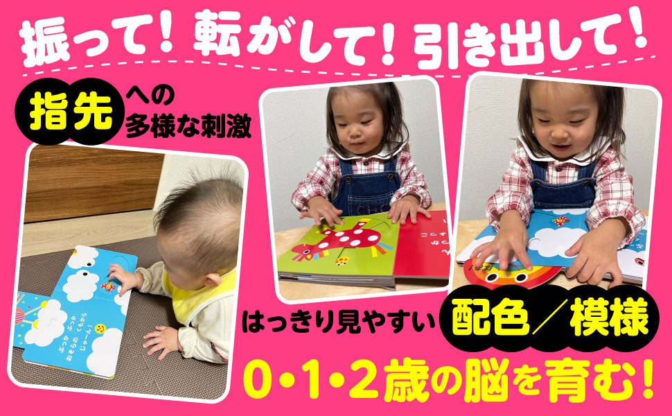 シリーズ初! 赤ちゃんがくぎ付けになるキラキラ「ミラー」シートつき!顔が映る大きなミラーは、人とコミュニケーションをとるうえで大切な「表情認知力」を育みます。また、引き出して・振って動くダイナミックなしかけと発達心理学から生まれたカラフルなデザインは、指先と目から脳を刺激します。バラエティ豊かな「ばあ!」遊びに、赤ちゃんが笑う! 泣き止む!