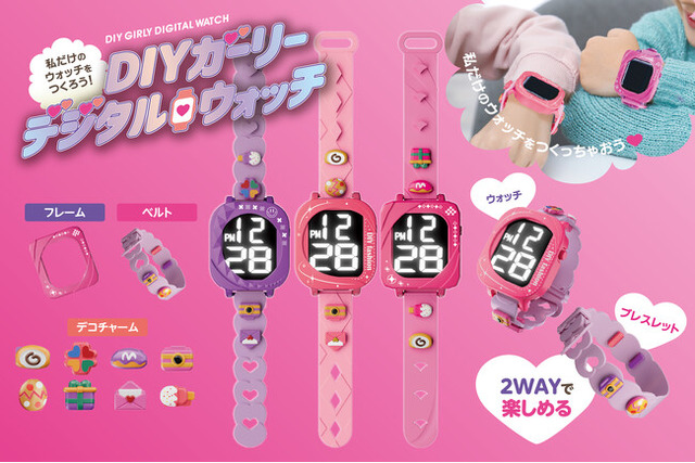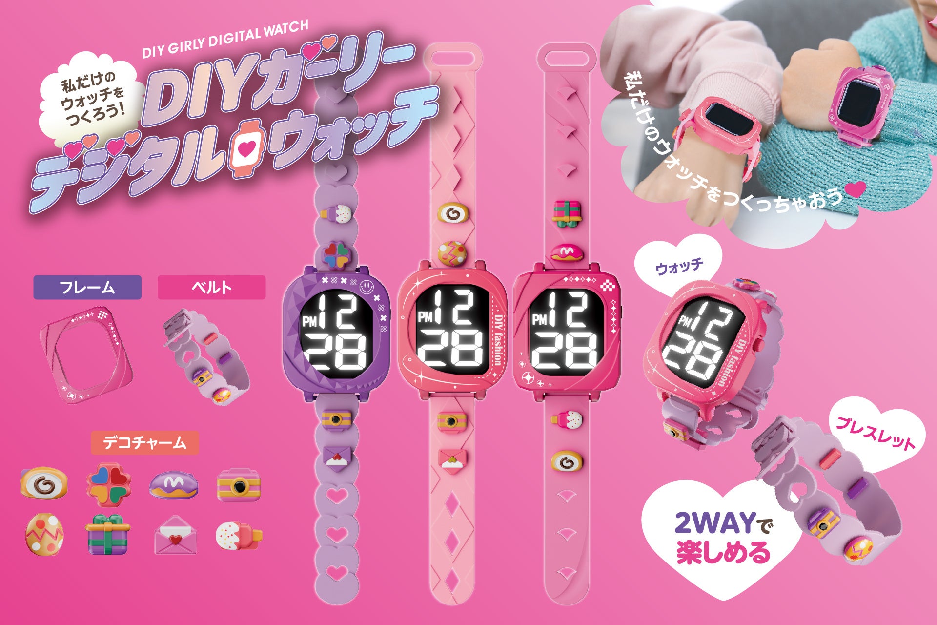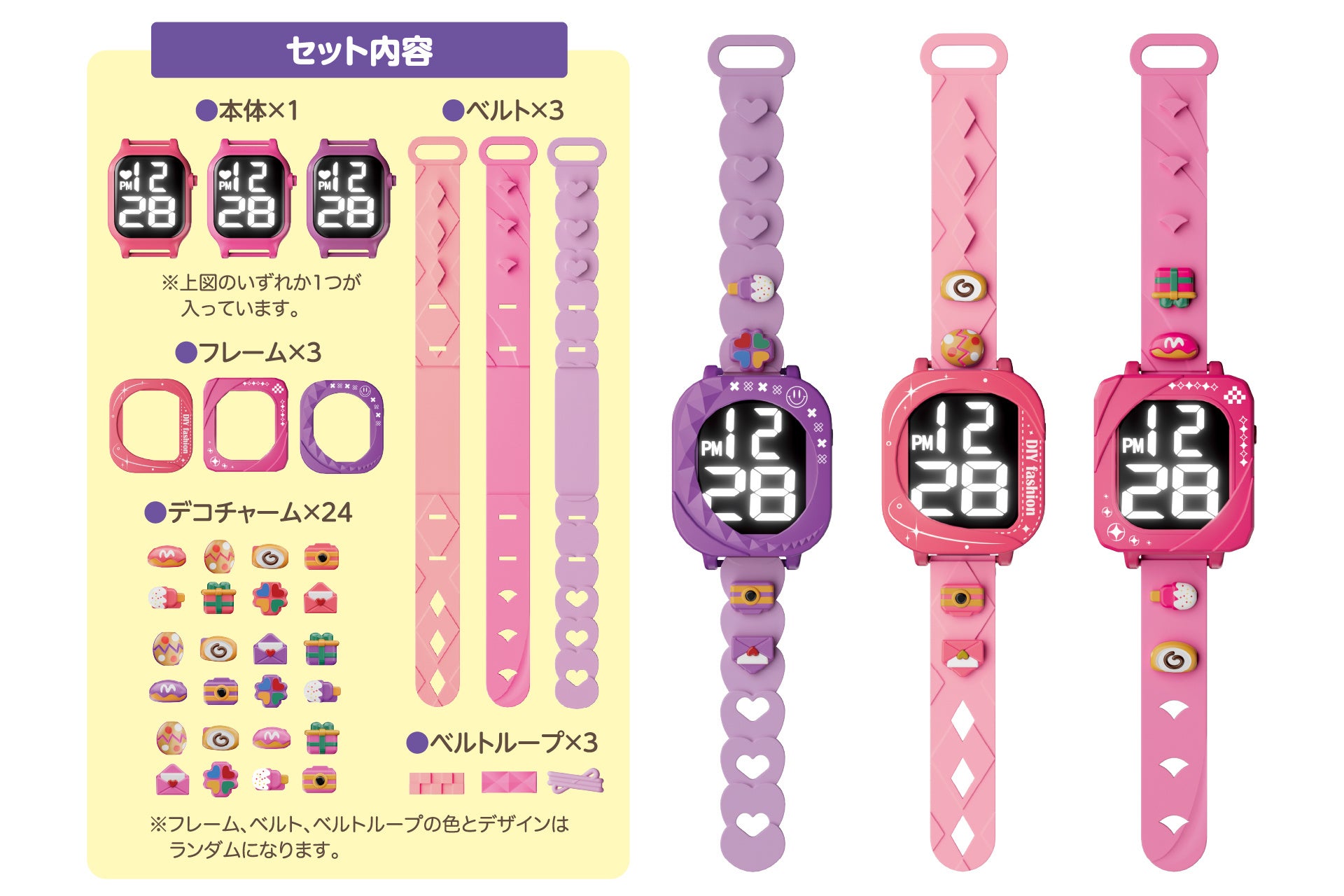 特徴:自分だけの“かわいい”を作れる、DIYタイプのデジタルウォッチ。パーツを自由に組み合わせて、ウォッチとブレスレット2WAYで楽しめるガーリーなアイテムです。アクセサリー感覚で身につけられ、毎日のコーデのワンポイントにもぴったり。