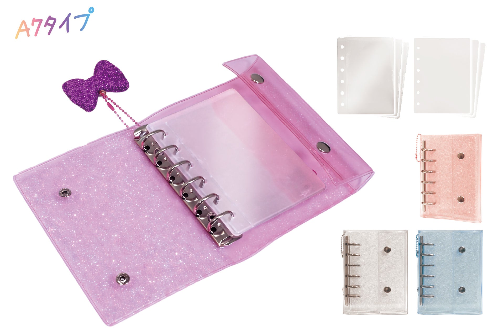 特徴:お気に入りのシールをきれいに整理・保管でき、2種類のリフィルが付いたキララメシール手帳!集めたシールのコレクションはもちろん、整理にも!自由にデコれて自分好みにカスタマイズ♪チャームホール付きで好きなチャームもつけれます。コンパクトサイズで持ち運びしやすく、いつでもどこでもシール選びが楽しめます。