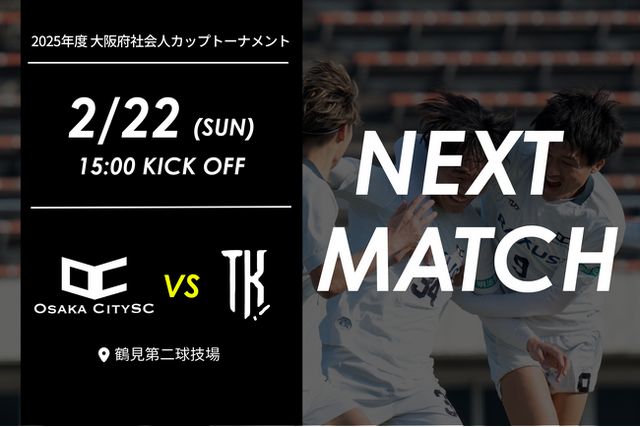 Osaka City SCは、2025年度 大阪府社会人カップトーナメント1回戦において、T.K.F.Cと対戦いたします。