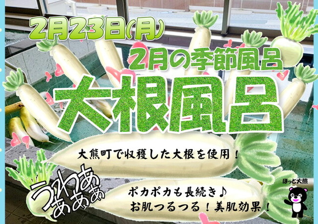 2月の季節風呂 大根風呂を23日(月・祝)に開催します。
