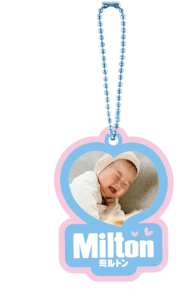 専用のフォトメーカーで作成した画像をInstagramに投稿していただいたママやパパの中から、抽選で31名様にお子さまの画像入り「ミルトンハートオリジナルキーホルダー」をプレゼント!