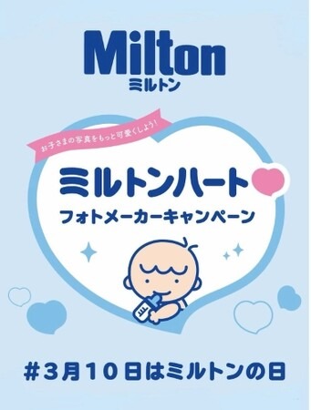 この「ミルトンの日」を記念して、赤ちゃんの写真でオリジナルのCM風画像を作成できる「ミルトンハート(ハート)フォトメーカーキャンペーン」を実施しています。