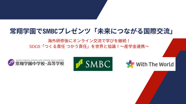 本記事でご紹介する『SDGs12「つくる責任 つかう責任」を世界と協議!SMBCプレゼンツ「未来につながる国際交流」』は、社会問題の解決能力を養う等を目指し、三井住友銀行の支援を受けて実施されています。本プログラムでは、海外の生徒と修学旅行から事後学習にかけて学んできた物流をテーマにSDGs12「つくる責任 つかう責任」について 海外の生徒と協議をすることで異なる文化背景を持った人々の視点を理解する力や、世界の人々と協働して持続可能な社会に向けて課題を解決していく能力の育成を目指します。