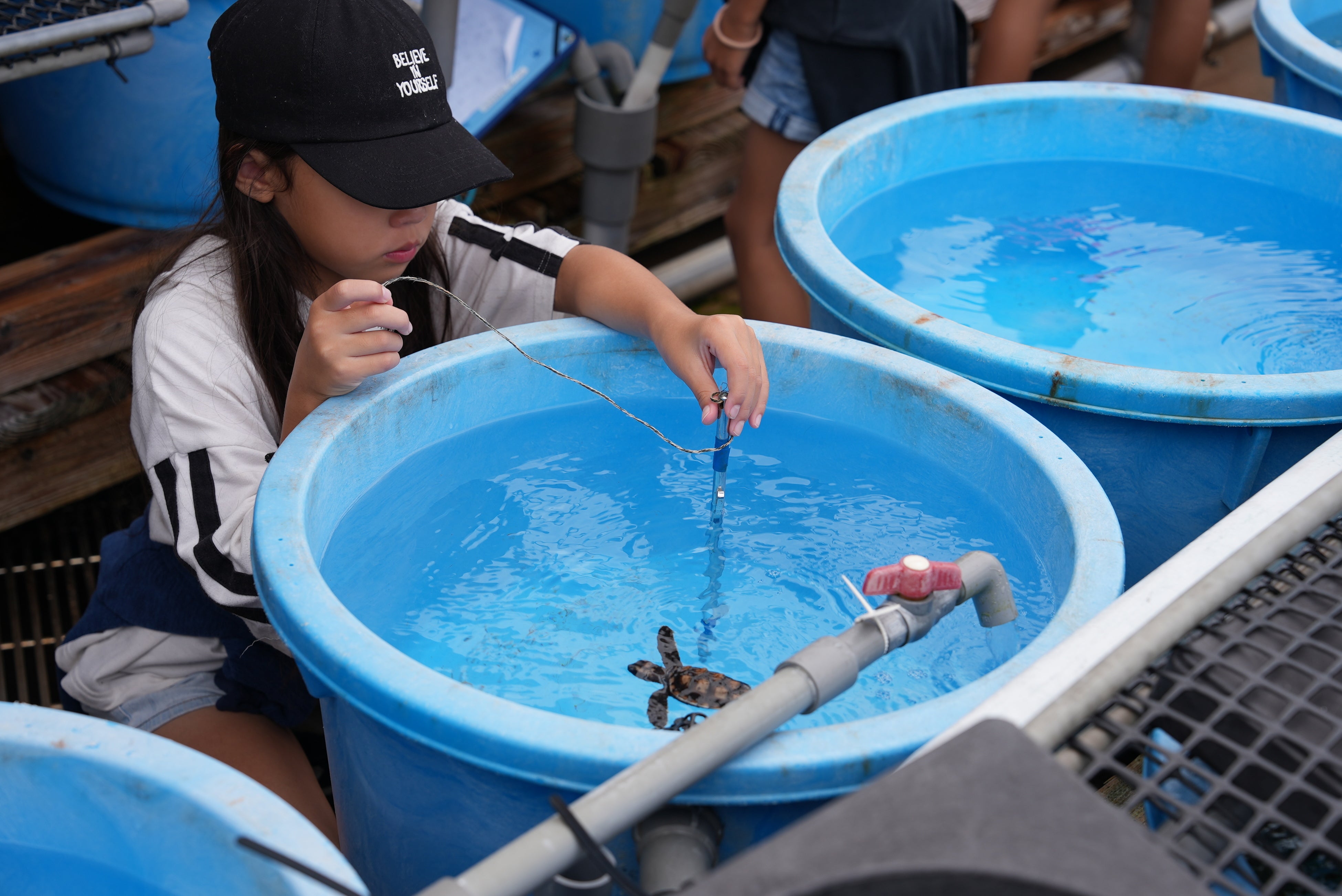 沖縄美ら海水族館では、2007年より地元小学生を対象にウミガメの飼育を通じた環境学習プログラムを実施しています。