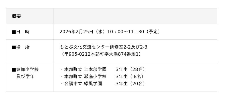 2025年度は、上本部学園、瀬底小学校、緑風学園の3年生が参加しました。