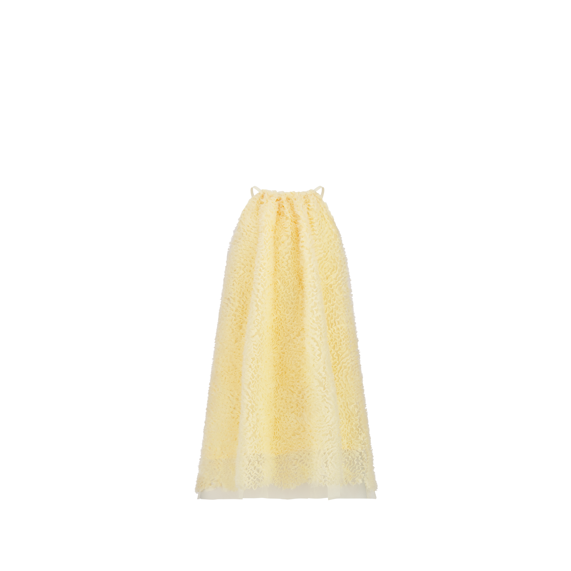 第二幕は、モーツァルトの卓越した技術に敬意を表しています。シフォンとチュールが空気のような軽やかさを生み出し、構築的なデザインはゆるぎない魅力を与えます。春を象徴するスズランが”Dior”ロゴと絡み合いながらアイテムに咲き誇り、ニットはコーラルピンクに輝きます。
