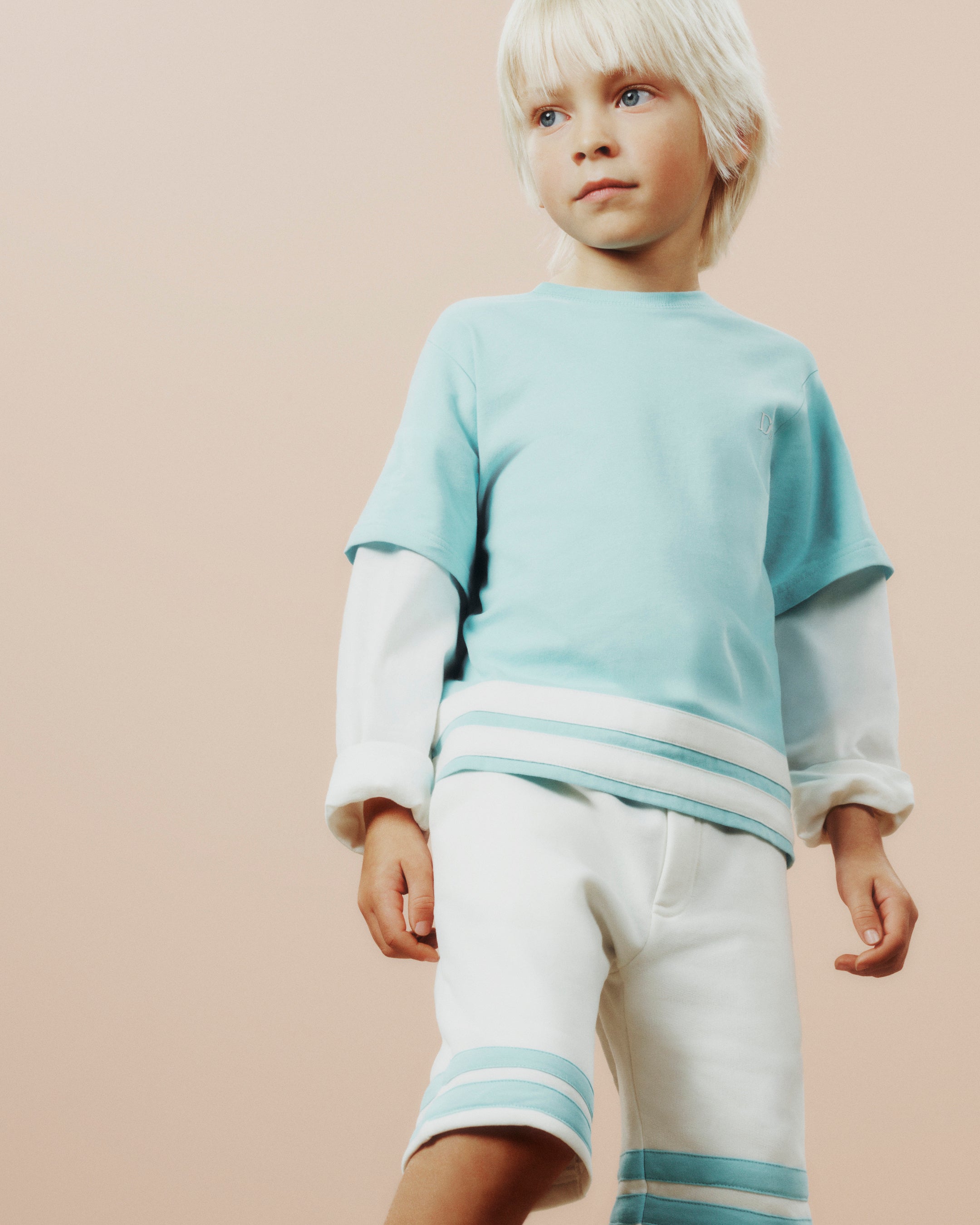 男の子のアイテムにもこの精神が反映され、ブレンドされたトーン、ヴィンテージ風のプリント、テクニカルファブリック、グラフィカルな「ディオール オブリーク」に至るまで、モダンに表現されています。