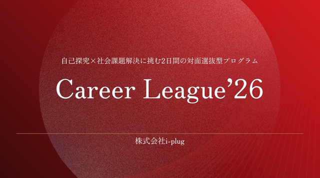 株式会社i-plug(本社:大阪市淀川区、代表取締役 CEO:中野智哉)が運営する大学生・大学院生向け会員制ラウンジ「plugin lab(プラグインラボ)」は、2028年卒業予定の学生(以下、28卒学生)を対象とした対面選抜型イベント「Career League'26 全国大会」を、2026年3月9日(月)・10日(火)に開催します。