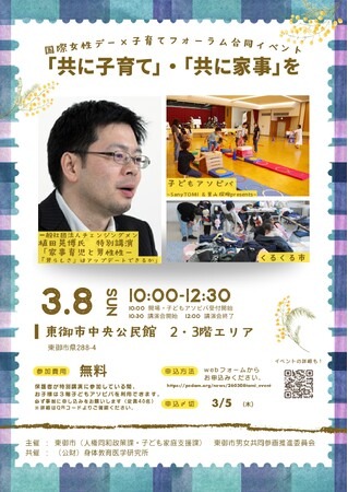 長野県東御市は、国際女性デー(3月8日)にあわせ、「国際女性デー×子育てフォーラム合同イベント『共に子育て』『共に家事』を」を2026年3月8日(日)に開催します。