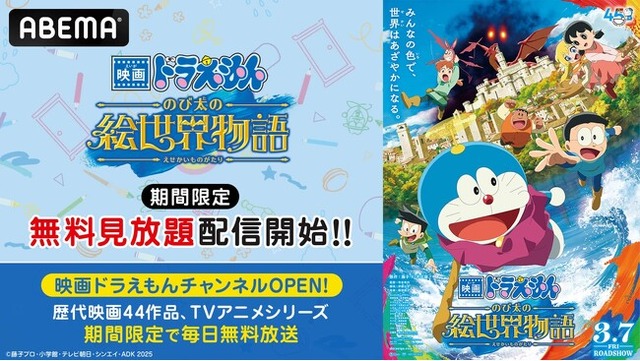 なお、2月21日(土)、22日(日)には、『映画ドラえもん のび太の絵世界物語』の「ABEMA」初となる無料放送を実施。本作品は、放送後1週間無料でお楽しみいただけます。