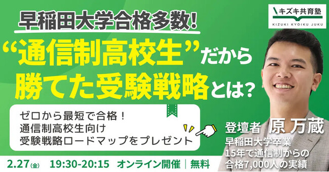 テーマは、「早稲田大学合格多数!”通信制高校生だから”勝てた受験戦略とは?」です。