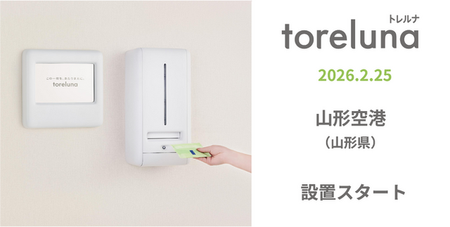 株式会社ネクイノ(大阪市北区、代表:石井 健一)は、トイレの個室で生理用ナプキンを常備し無料で提供するサービス「toreluna(トレルナ)」(以下 トレルナ)を、山形空港へ設置し、サービスの提供を開始いたします。