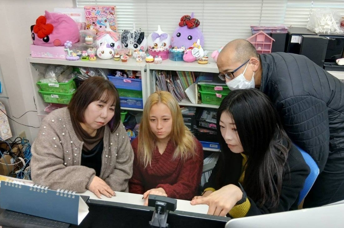 沢山の応募から、どれをグランプリにするか真剣に悩むサン宝石スタッフ。SNSで活躍する ほっぺちゃんのおかあしゃんやボス、若手スタッフと「これが可愛い」「こっちはどう?」と真剣に精査させていただきました。