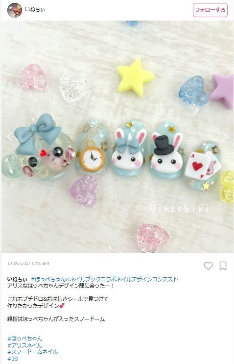 キャラクター雑貨の企画・販売を行うメモリーテックつくば株式会社 サン宝石(本社:茨城県筑西市、代表取締役:鈴木伸也)は、キャラクター「ほっぺちゃん」とネイルサロン予約アプリ「ネイルブック」(運営会社:株式会社スピカ)とのコラボレーション企画として、「ほっぺちゃん×ネイルブック ネイルデザインコンテスト」を実施いたしました。