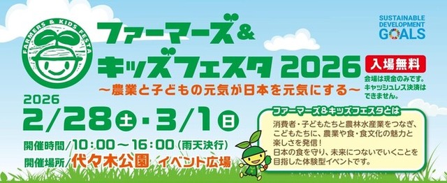 ワタミ株式会社(本社:東京都大田区、以下ワタミ)の子会社である有限会社ワタミファームは、2026年2月28日(土)~3月1日(日)の2日間、東京都渋谷区・代々木公園にて開催される、公益社団法人日本農業法人協会主催の「ファーマーズ&キッズフェスタ2026」に出展いたします。