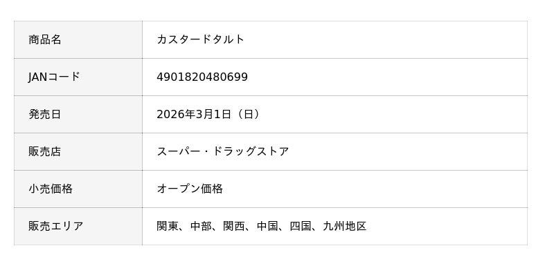 敷島製パン株式会社(Pasco)は、「満たされスイーツ」シリーズの新商品「カスタードタルト」を、2026年3月1日(日)より関東、中部、関西、中国、四国、九州地区にて発売します。
