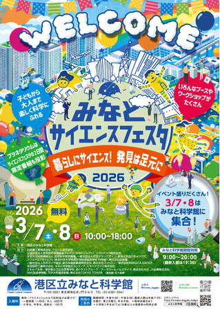 港区立みなと科学館(所在地:東京都港区虎ノ門 以下「みなと科学館」)は、2026年3月7日(土)・8日(日)の2日間「みなとサイエンスフェスタ2026~暮らしにサイエンス!発見は足元に~」を開催いたします。