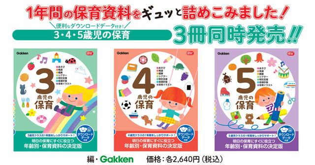 株式会社 学研ホールディングス(東京・品川/代表取締役社長:宮原博昭)のグループ会社、株式会社 Gakken(東京・品川/代表取締役社長:南條達也)は、2026年2月5日(木)に、Gakken 保育 Books『3歳児の保育 ダウンロードデータ付き』『4歳児の保育 ダウンロードデータ付き』『5歳児の保育 ダウンロードデータ付き』を発売いたしました。