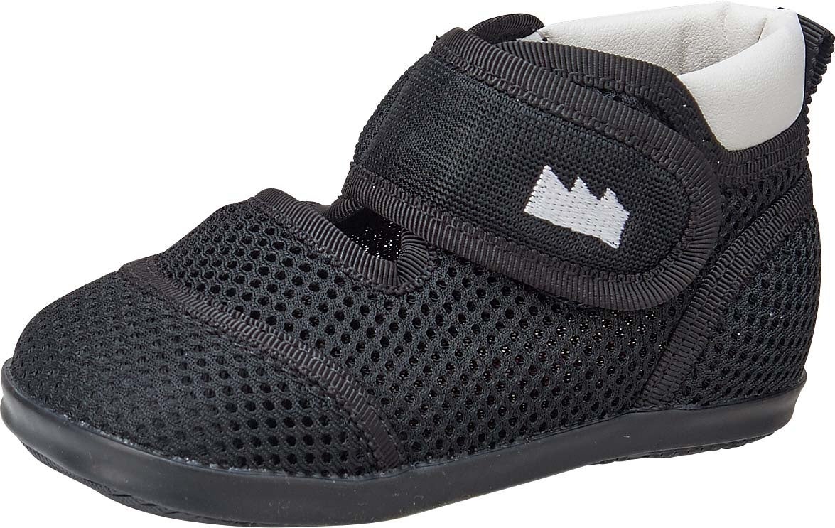 つま先を覆った設計のベビーサマーシューズです。軽量で通気性の良いメッシュ素材を使用し、暑い季節でも快適に着用できます。バンド部分の刺繍は、久留米工場のギザギザ屋根をモチーフにしています。インソールには、天然緑茶を原料とした自然素材「カテキン」を配合し、優れた抗菌・防臭効果を発揮します。