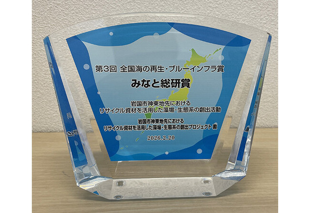 宇部工業高等専門学校(山口県宇部市 校長:金寺登 以下「宇部高専」)は、神代漁業協同組合、岩国市およびJFEスチール株式会社と共同で実施している「岩国市神東地先におけるリサイクル資材を活用した藻場・生態系の創出活動」が、みなと総合研究財団主催の「第3回 全国海の再生・ブルーインフラ賞」において「みなと総研賞」を受賞しました。授賞式は2月20日、広島港クルーズターミナルにて執り行われました。本活動は、リサイクル資材を活用した藻場造成とブルーカーボン創出の先進的取組として高く評価されたものです。