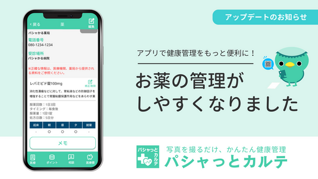 「パシャっとカルテ」は、散らばりがちな医療情報をスマートフォン一つで管理できるPHRアプリです。多くのユーザー様から寄せられた「複数のお薬を飲むタイミングをひと目で把握したい」「処方残数を正確に管理したい」という声にお応えし、今回の機能改善に至りました。■ アップデートの主なポイント