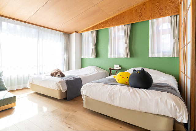 ファミリー層からご好評をいただいています。近年は特に未就学児連れの利用が増加する中、「小さな子どもが一緒でも安心して泊まれる客室」へのニーズが高まっていました。そこで当館では、既存のスタンダードファミリールームを全面刷新。段差のないワンフロア設計と、襖で仕切ることができる畳スペースを備えた「デラックスファミリールーム」を新設いたしました。