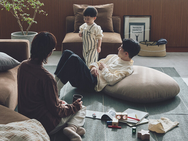1. 適度な弾力で体を支える、安心感のある座り心地体重を分散しながらも体をしっかりと支える構造のため、沈み込みすぎることなく、快適な座り心地が続きます。リラックス用や来客用としてはもちろん、ソファに座った際のオットマンとして、また小さなお子様と床で過ごす際など、幅広くお使いいただけます。