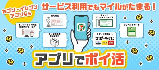 これにともない、セブン‐イレブンアプリの会員コードを提示してお支払いすると、これまで対象外だった公共料金の支払いやチケットの支払い・発券、プリペイドカードの購入などでも「セブンマイル」がたまるようになります。