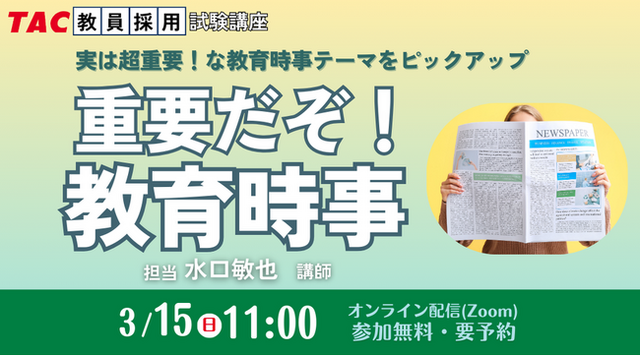 本セミナーでは、昨年の「教育時事」の出題傾向をもとに、重要時事テーマを3つほどピックアップ。問題解説を通じて情報を整理するとともに、みなさまのこれからの時事学習の契機となるよう促していきます。