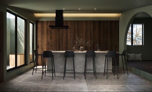 体も肌も整う動線: 延床面積32.3坪(106.81平方メートル )の中に、サウナ・水風呂・外気浴の完璧なサイクルを組み込みつつ、生活動線を邪魔しない配置を実現。 プライベート空間の確保: 視線を遮る設計により、33坪の敷地内でも人目を気にせずBBQや外気浴を楽しめる開放感を生み出しました。 料理をする時間も、食事の時間も、気づけば人が集まる。