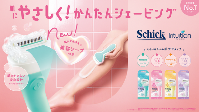 日本カミソリ市場No.1*2のシック・ジャパン株式会社(本社:東京都品川区、代表取締役社長:後藤秀夫、以下シック・ジャパン)は、女性に長く支持される No.1*1シェービングブランド「Schick Intuition(シック イントゥイション)」をリニューアルし、2026年3月3日より販売開始します。「Schick Intuition(シック イントゥイション)」は、シェーバー全体がソープに覆われた独自構造の肌ケアシェーバーで、濡らすだけで泡立ち、肌にやさしく、かんたんになめらかなシェービングを叶えるブランドです。今回のリニューアルでは、肌悩みに合わせて選べる4種類の肌ケア成分入りスキンバーを新搭載し、濡らすだけでよりなめらかに、やさしく剃れる快適な使用感へと進化しました。