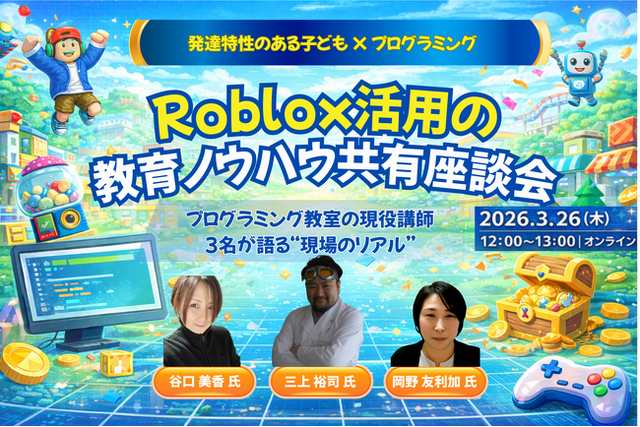 本座談会では、発達特性のある子どもとの関わり方の実践事例から、Robloxを活用した学びの可能性、さらに導入・運営のリアルまでを、3名の実践者が対話形式で共有します。- 一斉指導の難しさや成功体験の設計