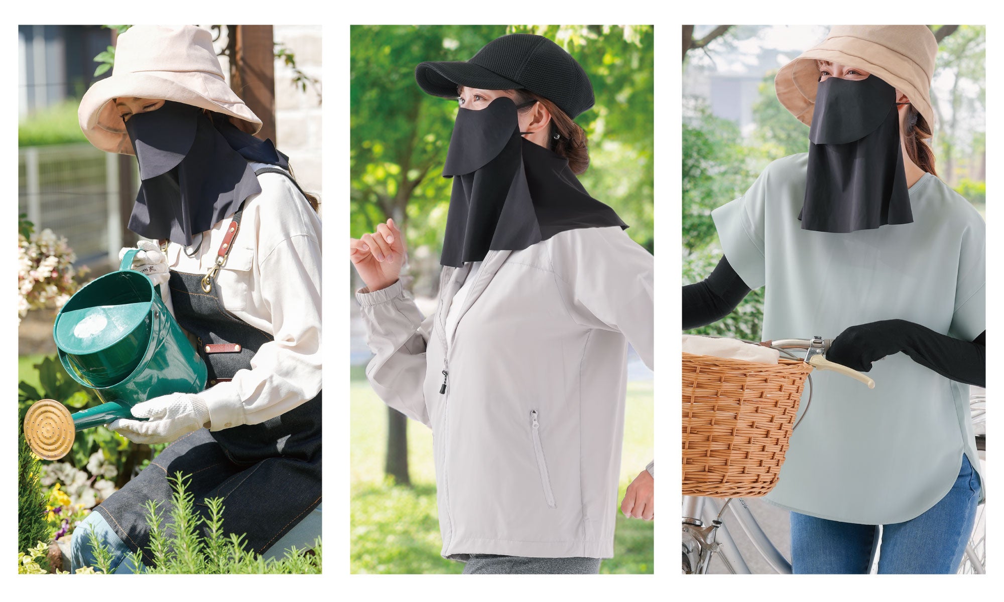 アウトドアやガーデニング、ちょっとした外出・・・「UV&クールフェイスカバー」があればどんなときも紫外線からしっかり守ってくれます。