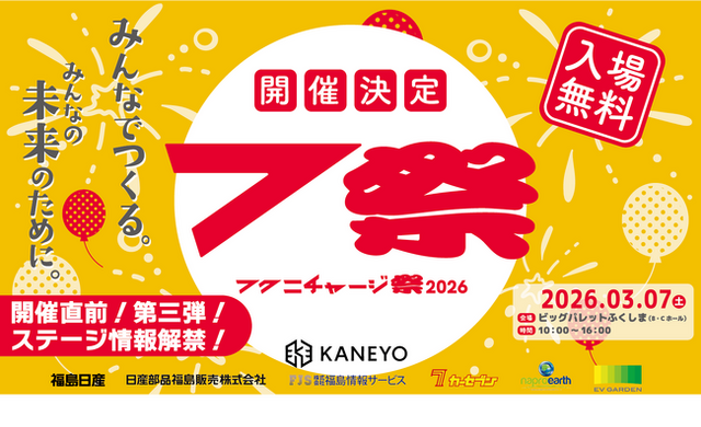 福島日産自動車株式会社(本社:福島県福島市、代表:金子 與志幸、以下、福島日産)は、2026年3月7日(土)開催予定の「フクニチャージ祭2026」において、イベント内容の第三弾情報を公開いたしました。
