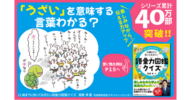 株式会社日本能率協会マネジメントセンター(代表取締役社長:張 士洛、東京都中央区、以下JMAM〔ジェイマム〕)は、新刊『12歳までに知っておきたい語彙力図鑑クイズ』を、2026年3月3日(火)より全国の書店、ネット書店にて発売します。本書籍は累計発行部数40万部を突破した、教育学者・齋藤孝氏による「12歳までに知っておきたい図鑑」シリーズの第5弾です。