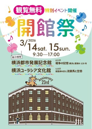 横浜都市発展記念館・横浜ユーラシア文化館は今年開館23周年を迎えます。これを記念し、昨年に続き開館祭(まつり)を開催します。