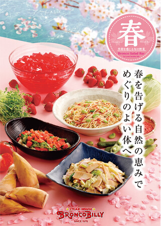 ステーキハウス ブロンコビリーを全147店舗展開する株式会社ブロンコビリー(本社:愛知県名古屋市 代表取締役社長:阪口 信貴)は、たけのこや空豆など春らしい彩り豊かな食材をふんだんに使用した『春サラダバー』を3月6日(金)から期間限定で提供を開始いたします。