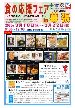 千葉市、市原市、四街道市、イトーヨーカ堂の連携により、3市選りすぐりの産品を取り揃えた「食の応援フェア2026」を開催します。