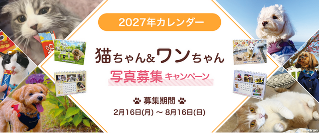 いなばペットフード株式会社(いなば食品グループ 本社:静岡県静岡市清水区由比)は2026年2月16日(月)より、2027年の弊社オリジナルカレンダーに掲載する猫ちゃん&わんちゃんの写真を募集しております。「いなば」のおやつをおいしく食べている姿、日常の愛くるしい仕草や表情など、飼い主様ご自慢のショットを奮ってお寄せください。