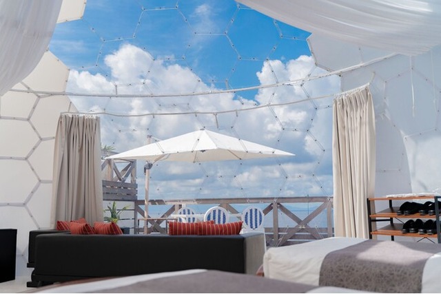 関西でも珍しい天井部が透明なドームテントをはじめ、専用バスルームとトイレを備えたログハウス型コテージ、ラグジュアリーなヴィラなど、滞在スタイルに合わせて選択が可能です。