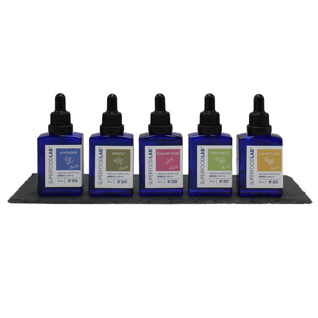■商品名:SUPERFOOD LAB CRアロマバスオイル【浴用入浴剤】 ラベンダー/ネロリ/ダマスクローズ/ベルガモット/イランイランの5種の香り