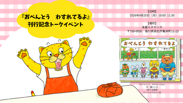 マイクロマガジン社が2026年3月5日(木)に発売する絵本『おべんとう わすれてるよ』の刊行記念トークイベント・サイン会が、本屋ルヌガンガで開催されます。