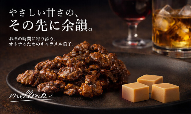 ワインやウイスキーに寄り添う、ワインやウイスキーに寄り添うキャラメルを軸にした大人のための菓子ブランド「mellmo」が、2026年3月6日正午より応援購入サービス「Makuake」に初登場します。