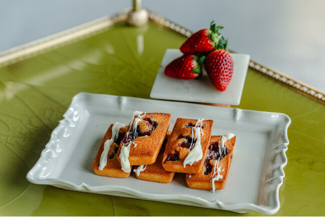 発酵バターの芳醇な香りが広がるフィナンシェ生地に、甘酸っぱい苺とまろやかなホワイトチョコを合わせました。中には、なめらかな苺フィリング。ひと口ごとに広がる苺の風味と、仕上げにあしらったホワイトチョコのやさしい甘みが春らしい華やかさを演出します。