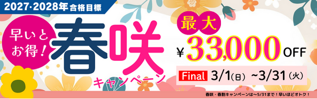公務員試験対策講座を展開しているTAC株式会社(東京都千代田区、代表取締役:多田敏男)は、2027年・2028年合格目標のコースを対象に、最大3.3万円割引となる「春咲キャンペーンFinal」を実施中です。